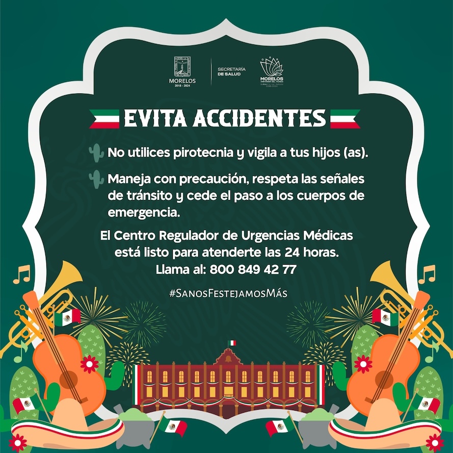 PORQUE DE CADA 10 INCIDENTES QUE SE REGISTRAN LA NOCHE DEL GRITO POR USO DE TODO TIPO DE PIROTECNIA, SEIS PONEN EN GRAVE RIESGO LA VIDA DE MENORES DE EDAD, EL HOSPITAL DEL NIÑO MORELENSE, HACE UN ENÉRGICO LLAMADO A PADRES DE FAMILIA, PARA QUE PROHIBAN A SUS HIJOS TRONAR CUETES EN ESTA CELEBRACIÓN…