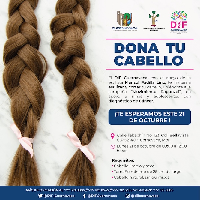 Noticias Felipe Villafaña octubre 19, 2024 DAMITAS DE CUERNAVACA, URGE SU COLABORACIÓN PARA QUE DONEN SU CABELLO Y CON ELLO, SE SUMEN A LA CAMPAÑA DE APOYO DE NIÑAS Y ADOLESCENTES CON CÁNCER. LA CAMPAÑA SE LLEVARÁ A CABO EL PRÓXIMO LUNES EN LAS INSTALACIONES DEL DIF MUNICIPAL…