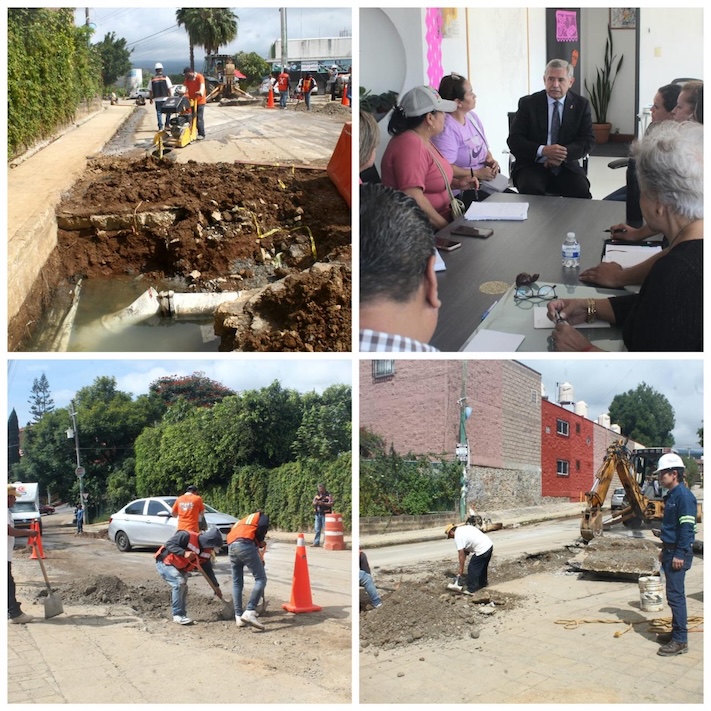 El presidente municipal de Cuernavaca, José Luis Urióstegui Salgado, atendió este martes a representantes vecinales de la colonia Lomas de Ahuatlán que se vieron afectados por el rompimiento en diferentes codos de la tubería de 10 pulgadas que se está rehabilitando en la calle Gustavo Petriccioli de la colonia Lomas de Ahuatlán ante la presión del agua y debido a que no soportó el atraque faltando tiempo de fraguado.
