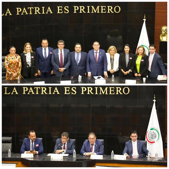 Mercado Salgado junto con el también senador, Saúl Monreal Ávila recibieron a los magistrados, brindaron la bienvenida y se comprometieron a trabajar desde esta comisión para resolver la problemática que se tiene en los tribunales en mención.