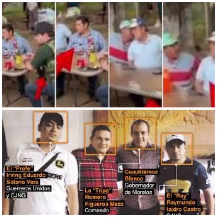 La semana pasada, circuló un video en redes sociales y diversos medios de comunicación tanto locales, como nacionales, donde aparecen Agustín Toledano Amaro y Jesús Corona Damián, alcaldes de Atlatlahucan y Cuautla respectivamente, reunidos con el presunto líder del Cártel de Sinaloa en Morelos, Júpiter Araujo Bernard, alias «El Barbas», quien en el filme, aparece sentado en la cabecera de una pequeña mesa, con un arma larga y un chaleco antibalas, mientras los presidentes municipales se encuentran sentados a la derecha y rodeados de personas armadas. Es oportuno resaltar que, comerciantes de Cuautla y transportistas de Atlatlahucan, han padecido de cobro de derecho de piso y constantes extorsiones por parte de la delincuencia organizada, que hasta el momento, ha operado con total impunidad, sembrando el terror en dichas demarcaciones.