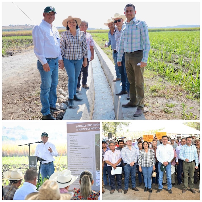 De igual manera, el funcionario estatal inauguró el revestimiento del canal del Centro, campo La Vega, ubicado en el Ejido de Mazatepec, en una longitud de 495 metros. El acueducto, pertenece al módulo de riego Río Chalma, del Distrito de Riego 016 “Estado de Morelos” y riega 98 hectáreas de caña, beneficiando a 60 productoras y productores.