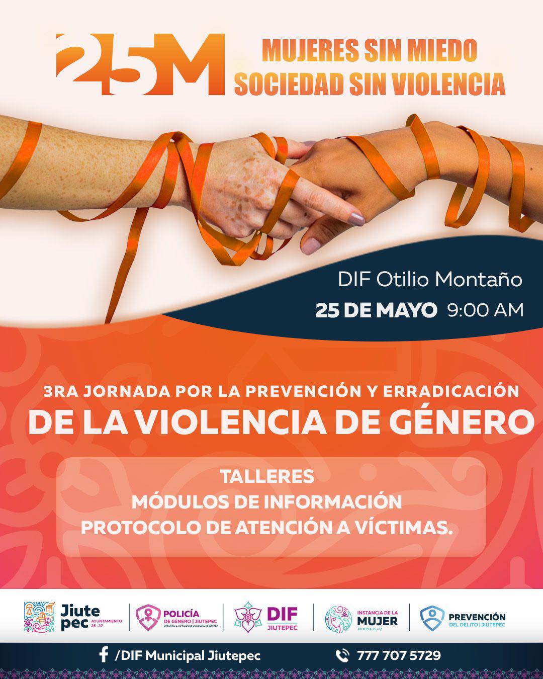 EL AYUNTAMIENTO DE JIUTEPEC Y EL DIF MUNICIPAL INVITAN A LAS MUJERES A PARTICIPAR EN LA 3ª JORNADA POR LA PREVENCIÓN Y ERRADICACIÓN DE LA VIOLENCIA DE GÉNERO..