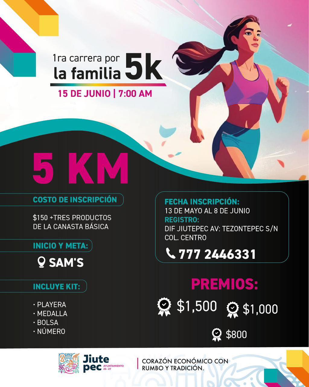 EL AYUNTAMIENTO DE JIUTEPEC INVITA A PARTICIPAR EN LA CARRERA POR LA FAMILIA ESTE 15 DE JUNIO, DONDE CADA PASO CUENTA PARA APOYAR A QUIENES MÁS LO NECESITAN.