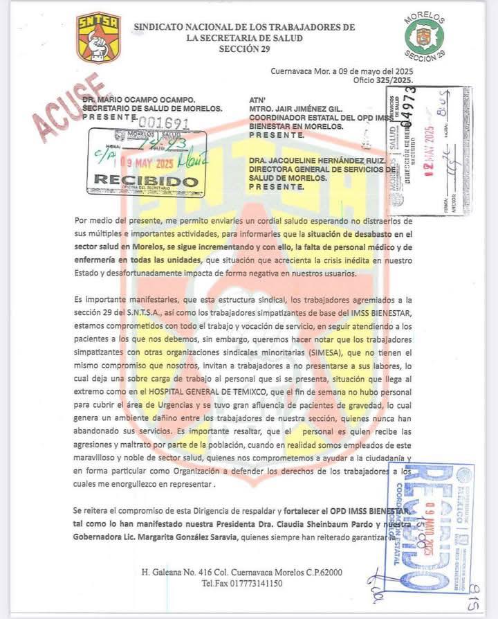 POR ENÉSIMA OCASIÓN, RECLAMA SINDICATO DEL SECTOR SALUD DE MORELOS, FALTA DE PERSONAL MÉDICO EN CENTROS Y HOSPITALES…