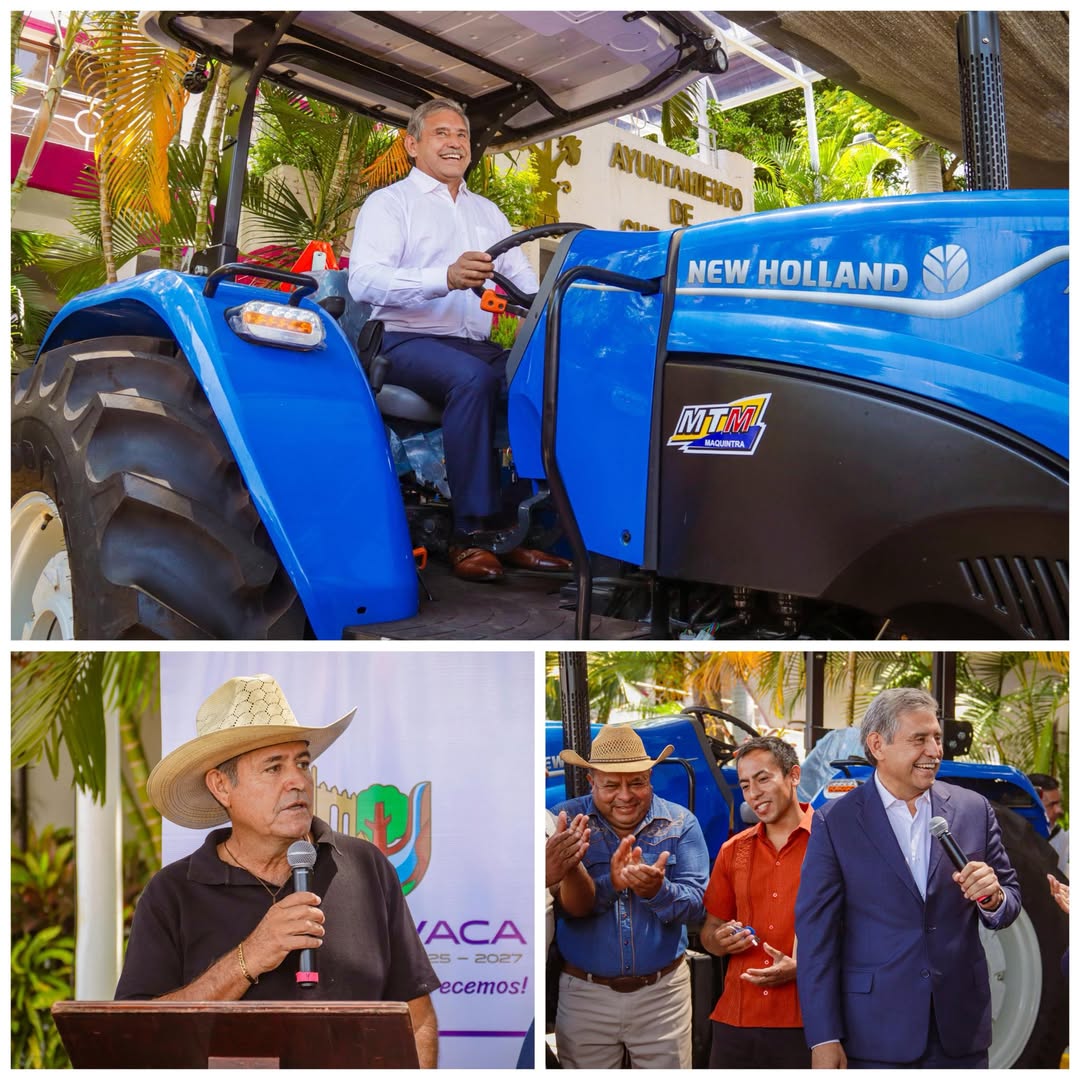 El evento protocolario se llevó a cabo en la sede Papagayo del Ayuntamiento, donde el alcalde destacó que el equipo entregado, marca New Holland TT4.9 MS 12×12, con motor FPT Iveco S8000, permitirá a las y los ejidatarios acceder a maquinaria moderna, optimizar sus procesos productivos y aumentar la competitividad en sus actividades agrícolas.