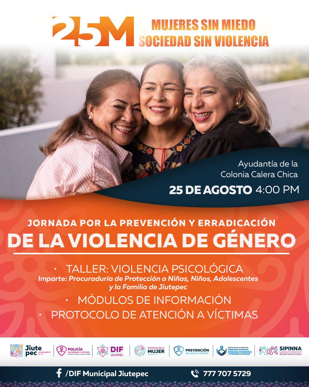 El evento se llevará a cabo el 25 de agosto a las 4:00 pm en la ayudantía de la colonia Calera Chica y contará con talleres interactivos módulos informativos y el protocolo de atención a víctimas