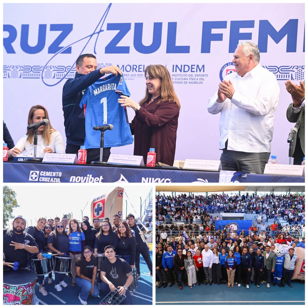 La gobernadora Margarita González Saravia anunció la llegada del club de futbol Cruz Azul femenil a Morelos, que tendrá como sede el Estadio Centenario de Cuernavaca a partir del torneo Clausura 2026, lo que marca un hecho histórico para el deporte profesional en la entidad.