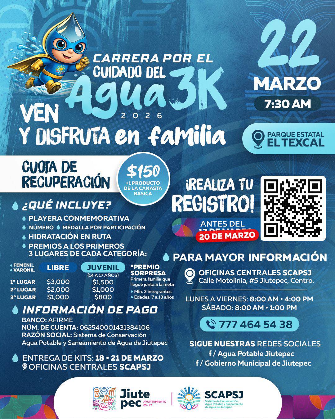 Únete a la Carrera 3K por el Cuidado del Agua 2026 este 22 de marzo en El Texcal.