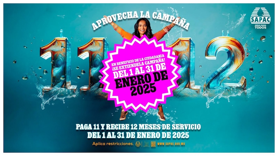 EN APOYO A LA ECONOMÍA DE LAS FAMILIAS CUERNAVAQUENSES, EL SISTEMA DE AGUA POTABLE Y ALCANTARILLADO DE CUERNAVACA, EXTIENDE SUS CAMPAÑAS 11X12 Y DE REGULARIZACIÓN, AMBAS CON VIGENCIA HASTA EL 31 DE ENERO…