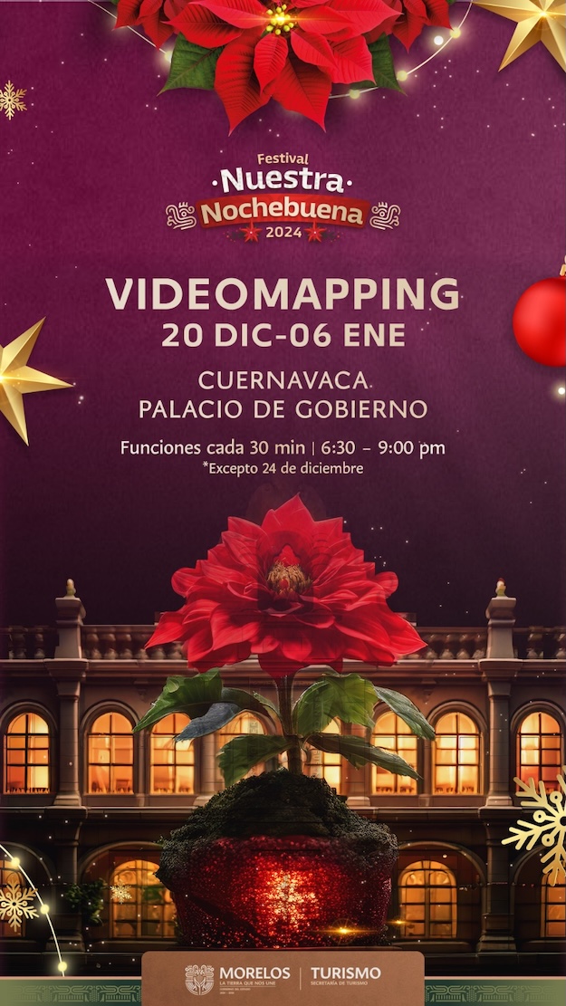 EN EVENTO GRATUITO, PRESENTARÁ FESTIVAL “NUESTRA NOCHEBUENA”, ESPECTÁCULO DE VIDEOMAPPING EN PALACIO DE GOBIERNO: PROYECCIONES DEL 20 DE DICIEMBRE AL 06 DE ENERO DESTACARÁN LA RIQUEZA NATURAL E IDENTIDAD DE MORELOS…