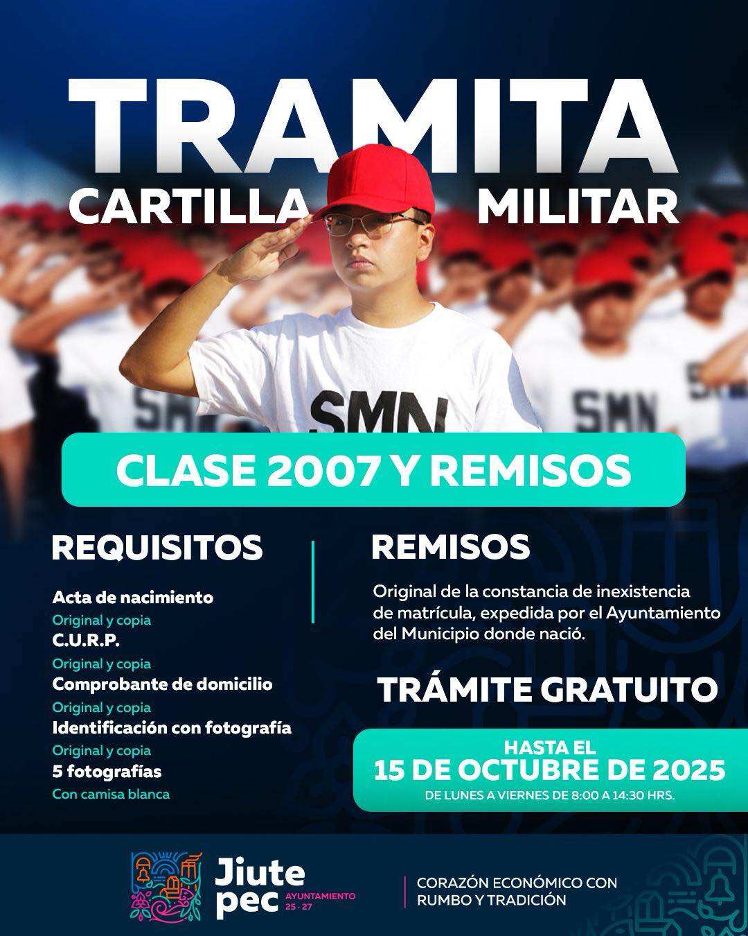 OJO JÓVENES, EL AYUNTAMIENTO DE JIUTEPEC TE INVITA A TRAMITAR TU CARTILLA MILITAR…